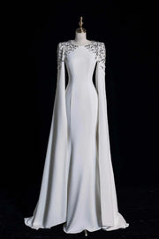 Chic White Scoop Neckline Beading Long Sleeve Long Prom Dress Party Dress