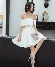 Cute White Satin Short Prom Dress White Retract Your Waist Homecoming Dress