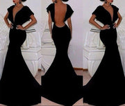 Deep V-Neck Bridelily Black Velvet Prom Dresses Short Sleeve Elegant Mermaid Evening Gowns