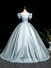 Elegant Light Blue Satin Off the Shoulder A-Line Floor Length Prom Dress Party Dress