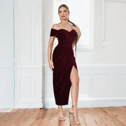 Elegant Velvet Evening Gown Slim-fit Mermaid Retract Your Waist Prom Dress