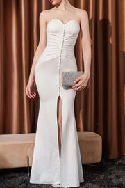 Full of charm Mermaid White Strapless Long Slim-fit Prom Dress With Slit