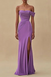 Full of charm Off Shoulder Purple Mermaid Long Formal Dress With Slit