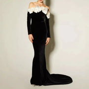 Full of charm Velvet Bow Off Shoulder Strapless Floor-Length Prom Dress
