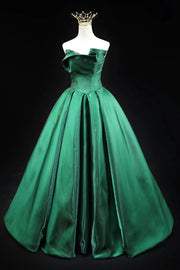 Green Satin Sequins Strapless A-Line Floor Length Long Prom Dress Evening Party Dress