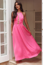 Halter Neck Cutout Open Back Hot Pink Maxi Evening Dress Party Dress