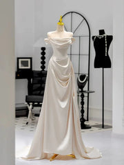 Ivory Satin Off Shoulder A-line High Low Long Party Dress Prom Dress Evening Dress