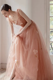 Step into a world of delicate romance with the Lovely A-Line Pleated Applique Tulle Pink Long Prom Dress With Short Train. The A-line silhouette flows in layers of airy tulle, creating gentle movement with every step. Delicate pleats add texture to the bodice, while floral appliques scattered across the skirt bring a touch of nature - inspired artistry. The soft pink hue enhances the dreamy vibe, and a short train adds a subtle, graceful finish, merging tulle lightness with intricate design for a look that’s both sweet and sophisticated.