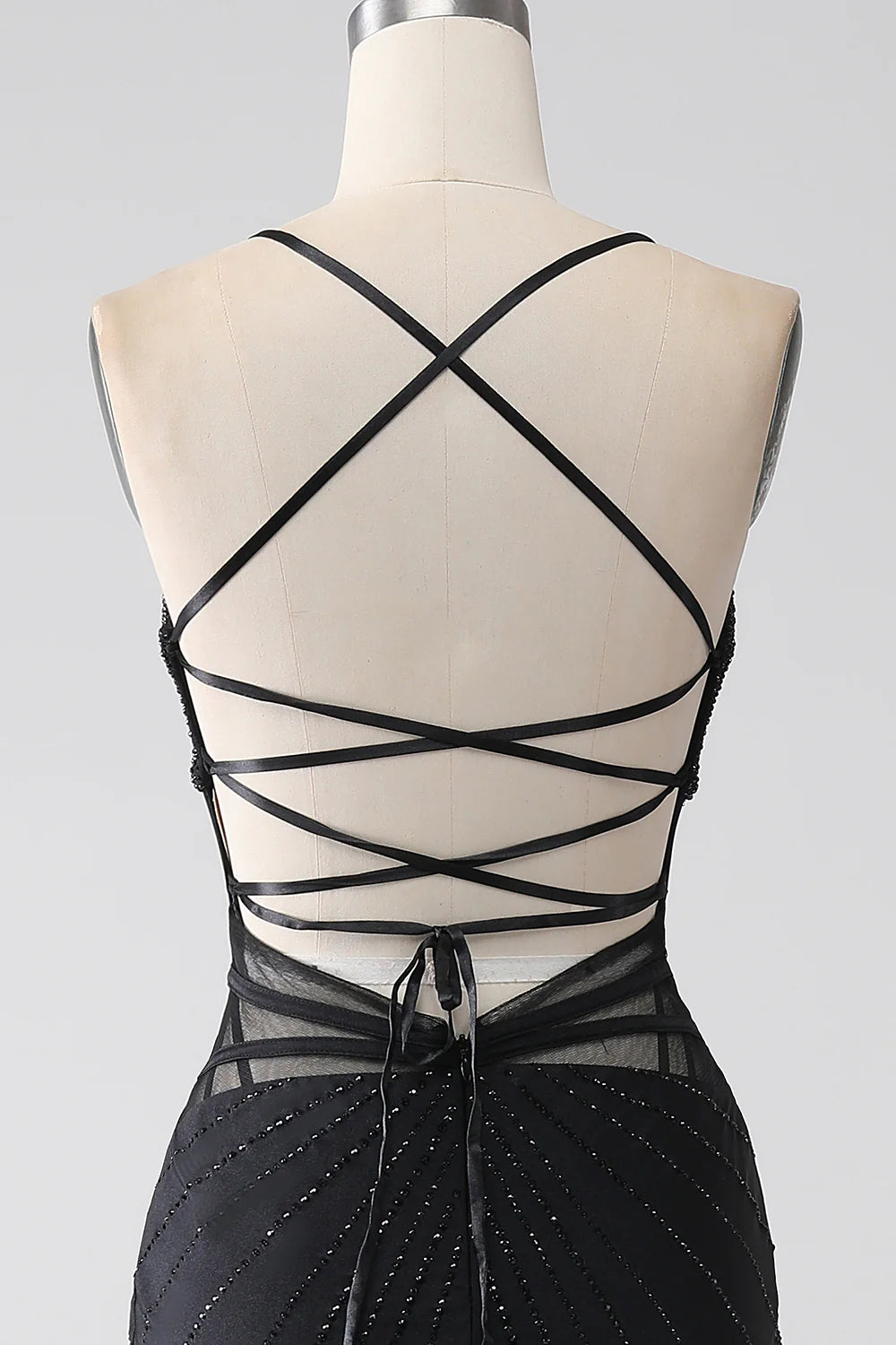 Mermaid Black V Neck Spaghetti Straps Hollow Beaded Long Evening Dress Prom Dress with Slit - US 2 / UK 6 / EU 32