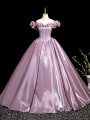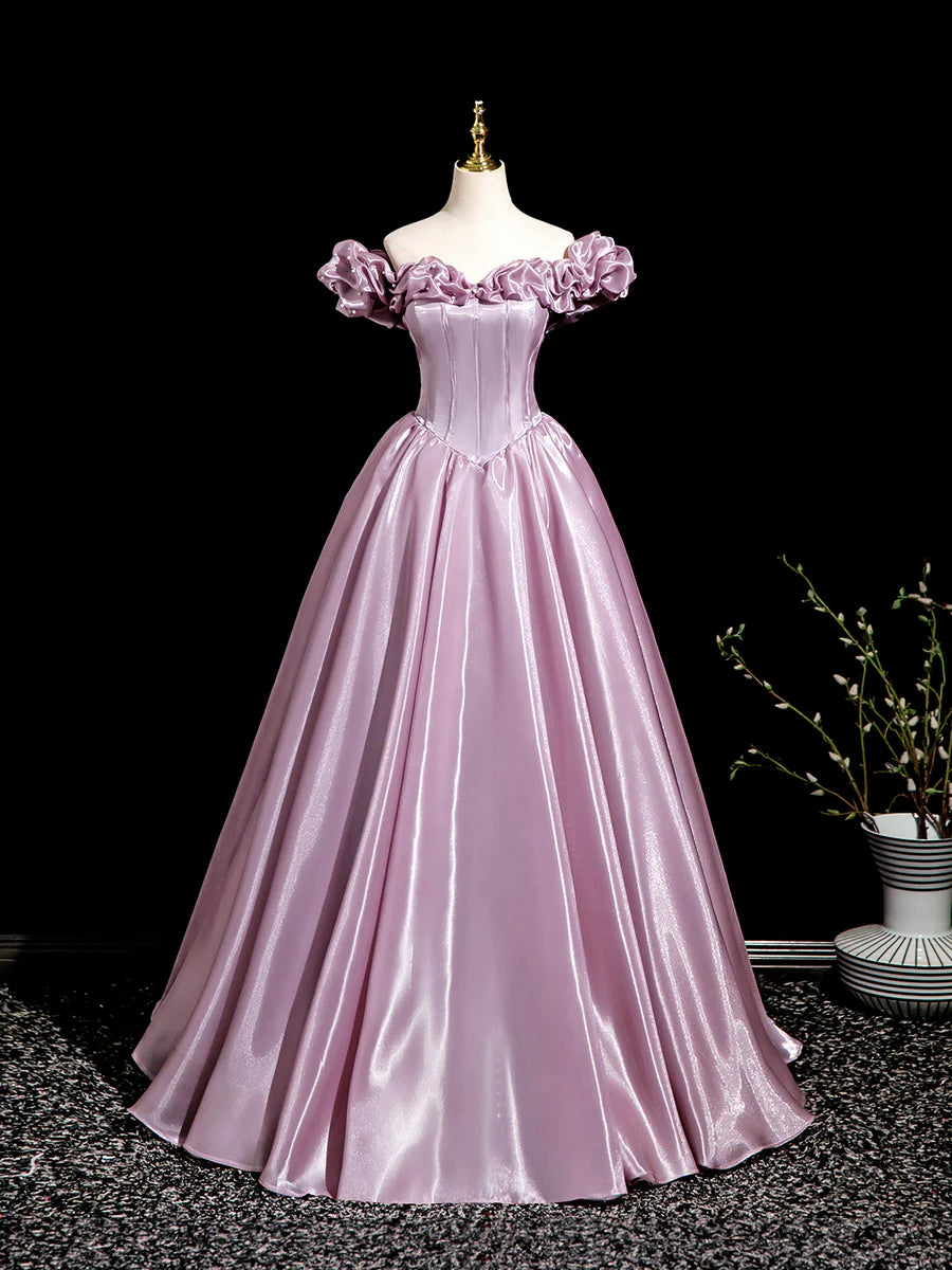 Pink Satin Beaded Off the Shoulder Long Prom Dress Evening Party Dress With Corset