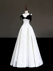 This elegant white jacquard satin prom dress features a flattering A-line silhouette and delicate spaghetti straps, creating a refined yet comfortable fit. Its long, flowing design adds a touch of sophistication, perfect for formal occasions or special events. Crafted from high-quality satin jacquard, this dress offers subtle texture and shine that enhances its timeless appeal. Ideal for prom or evening parties, it combines classic style with modern elegance.