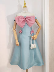 Sexy A line Satin Women's Holiday Dresses Strapless Blue Homecoming Outfits