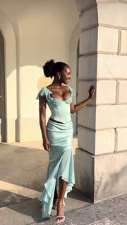 Sexy Floor Length Evening Dresses Green Satin Sleeveless Prom Party Dress