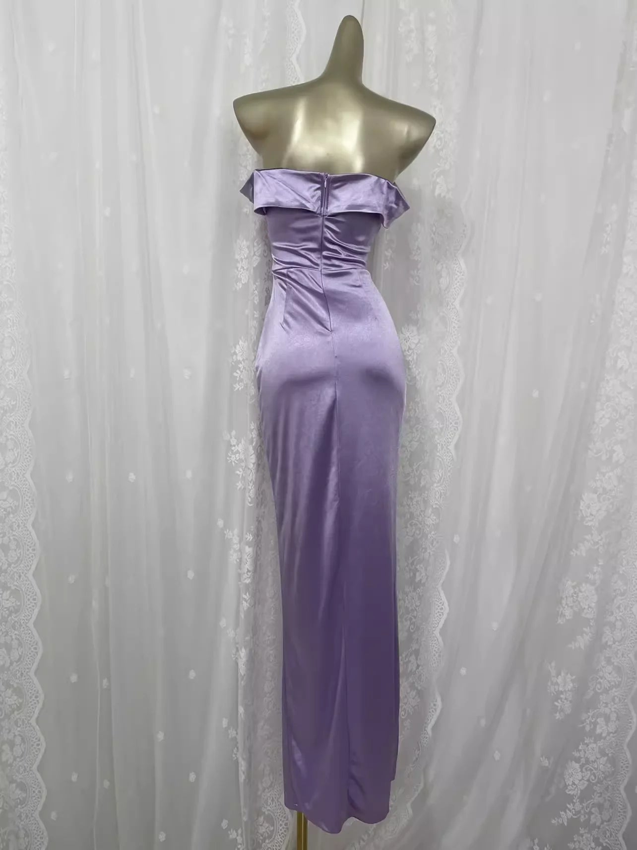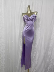 Sheath Off The Shoulder Lilac Vacation Dress Slit Vintage Prom Dresses