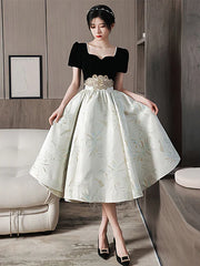 Short Sleeve Applique A-Line Satin Velvet With Beaded Party Dress