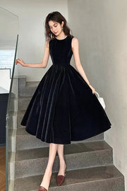 Simple Black Velvet Pearl Back Zipper A-Line Short Party Dress Evening Dress