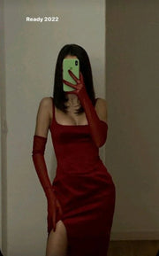 Simple Mermaid Side Slit Satin Slim-fit Sleeveless Long Prom Dresses Without gloves