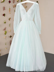Simple v neck tulle tea length prom dress, tulle retract your waist formal dress