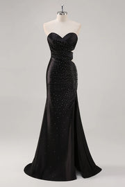 Sparkly Beaded Black Sweetheart Satin Noble and elegant Prom Dress With Slit