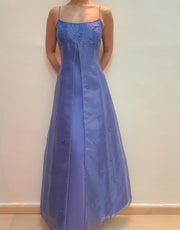 Stunning A Line Beaded Purple Tulle Satin Prom Dress Spaghetti Strap Evening Dress