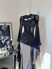 Elevate your evening with this stunning black mermaid prom dress featuring delicate lace straps and elegant long sleeves. The drawstring detail offers a customizable fit, highlighting your silhouette with sophistication. Perfect for formal events, its graceful design combines classic charm with modern style for an unforgettable look. Ideal for prom, parties, and special occasions.