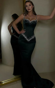Elevate your evening glamour with this Sweetheart Corset Rhinestone Embellished Evening Dress Prom Dress With Train. It features a chic sweetheart neckline, a structured corset design for a sculpted silhouette, and dazzling rhinestone embellishments that catch the light. The mermaid cut with a subtle train adds drama, while the sleek fabric ensures sophistication.