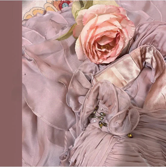 This elegant prom dress features a tender pink chiffon fabric with delicate pleating and a sophisticated one-shoulder design. Adorned with 3D floral accents and layered details, the mermaid silhouette enhances your figure for a graceful, flattering fit. Perfect for homecoming or special occasions, this dress combines romantic charm with expert craftsmanship to ensure you stand out with timeless style.