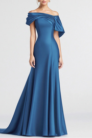 Unique design Blue Off The Shoulder Satin Mermaid Long Formal Dress