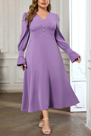 Violet V Neck Long Sleeve Plain Retract Your Waist Midi Bodycon Prom Dress
