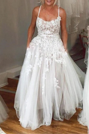 A-Line Boho Tulle Lace Spaghetti Straps Appliques Floor Length Wedding Dresses A Line Princess No Veils - US 2 / UK 6 / EU 32