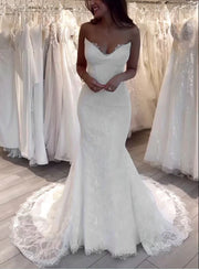 Full of charm Slim-fit Lace Elegant Mermaid V Neck Lace Long Wedding Dresses