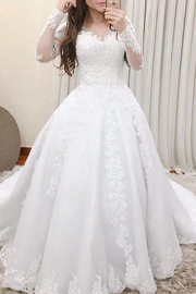 Pretty A-Line White Tulle Lace Long Sleeves Sweetheart Neck Appliques Wedding Dresses - US 2 / UK 6 / EU 32