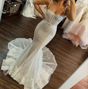 Slim-fit Sexy Ivory Sequins Mermaid spaghetti strap Long Wedding Dresses