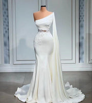 white mermaid vestidos de novia one shoulder Lace Applique wedding dress