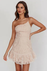 Make a statement at homecoming with this One Shoulder Polka Dots Ruffle Embroidery Mocha Short Homecoming Dress. The one-shoulder design exudes elegance, while the polka dots and delicate ruffle embroidery add a charming, whimsical touch. The mocha hue lends a soft, sophisticated feel. Crafted with attention to detail, the dress features a flattering silhouette that hugs your curves in all the right places, and the short length brings a playful vibe.